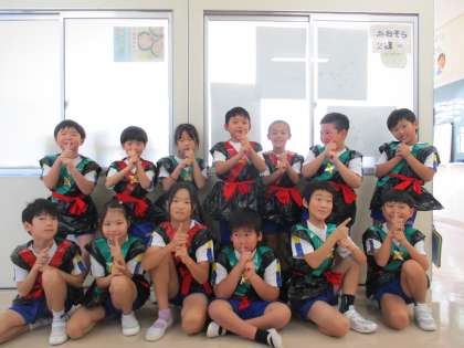みんなで集合写真を撮りました。 忍者になって、はいポーズ!