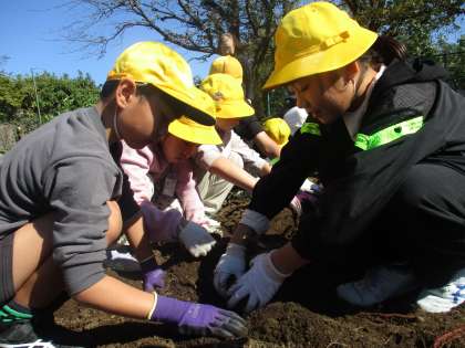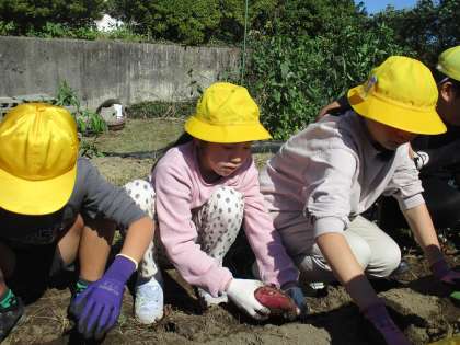 1学期に、畑に植えたサツマイモをみんなで掘りました。