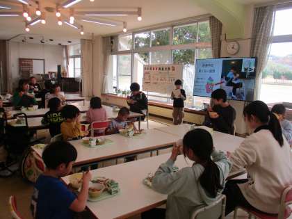 悪い姿勢でご飯を食べていると、内蔵がつぶれてしまい、食べたものを消化するのに時間がかかったり、消化機能が低下してしまい、お腹が痛くなったり、食欲がなくなったり、気持ち悪くなったりと体の調子が悪くなってしまいます。よい姿勢の合い言葉「グー・ペタ・ピン」を守って楽しい給食時間にしましょうというお話でした。