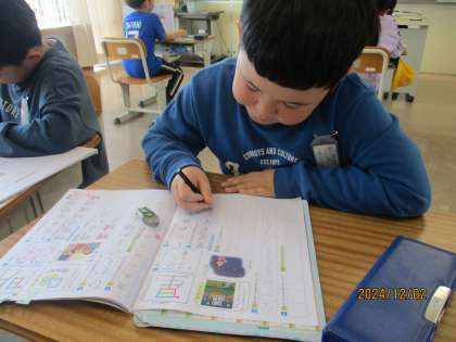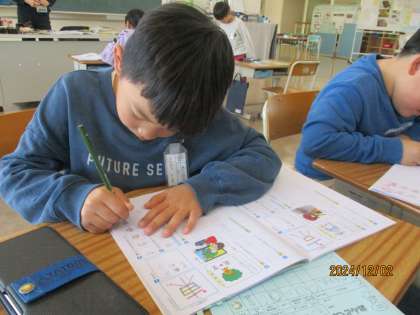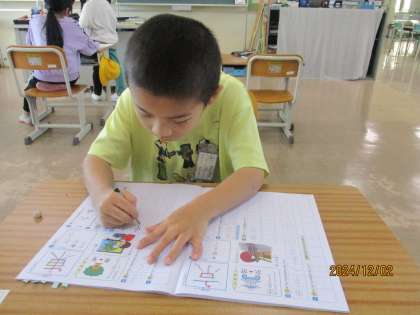 鉛筆の持ち方をしっかり意識して、漢字ドリルに取り組みました。