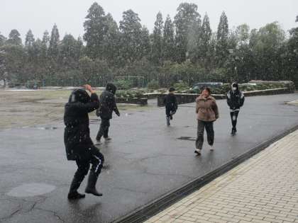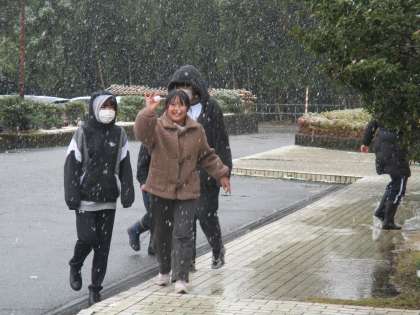 今日は、朝から雪が降っています。休み時間になると、子供たちの元気な声が外から聞こえてきました。まだ、少量しかない雪を集めたり、雪が降る中を走りまわったりして、雪が降ったことを喜んでいました。
