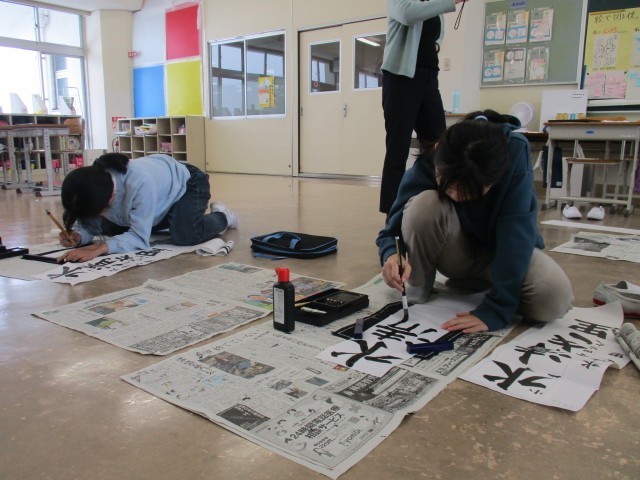 5年生は「水清き里」、6年生は「夢の実現」を書きました。