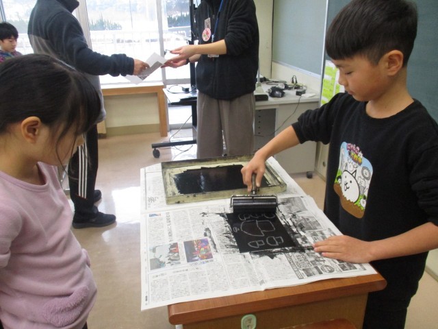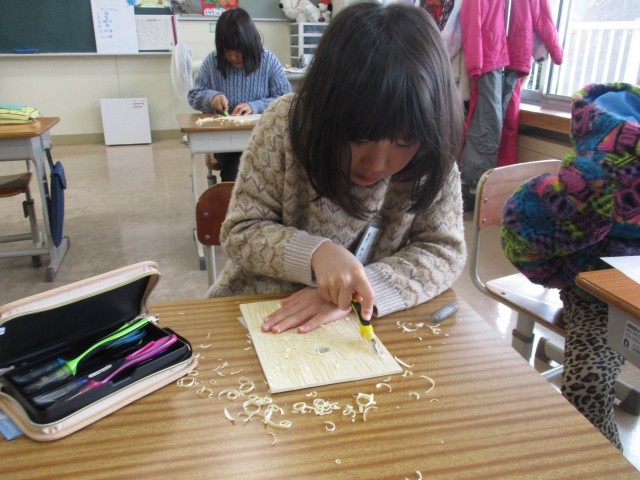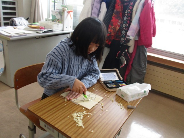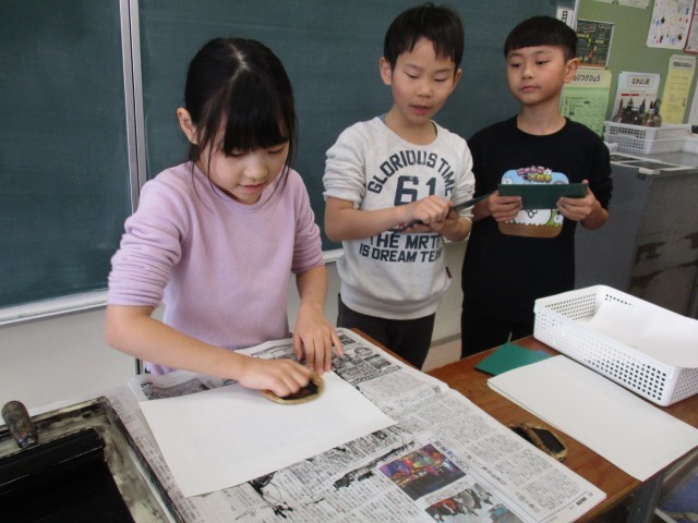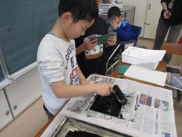 本番に向けて、彫刻刀で彫った箇所が、どのようになるかを確認しました。