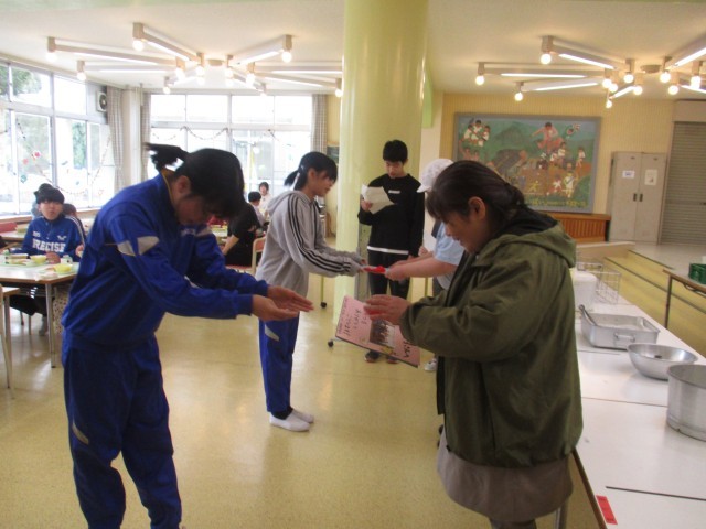 いつも、おいしい給食をつくってくださって、ありがとうございます。これからも、よろしくお願いします。