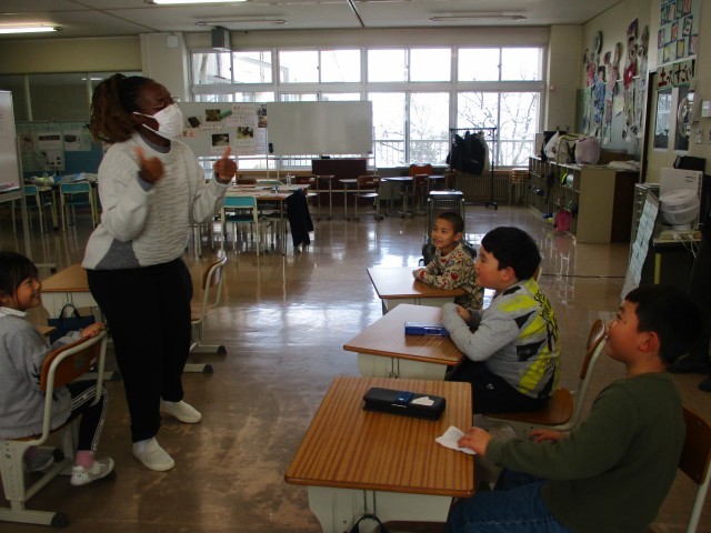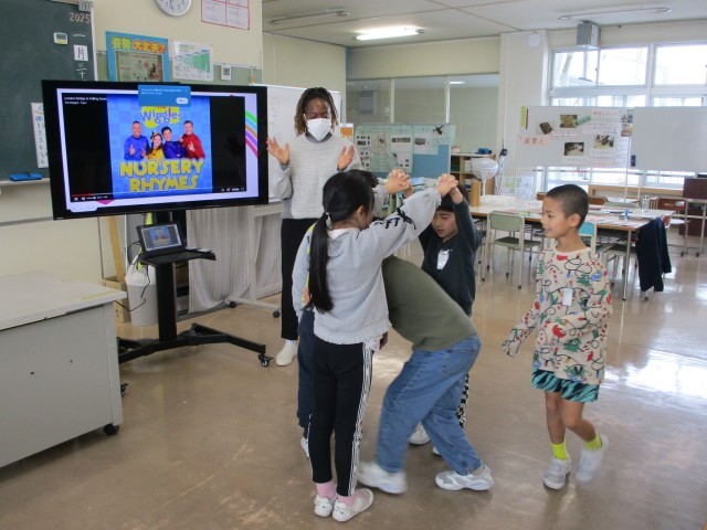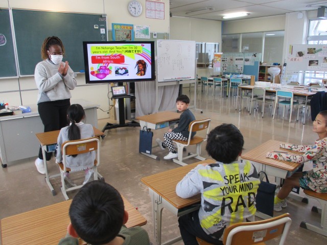 ンダンゴ先生と、外国語を使って楽しく話したりゲームをしたりしました。