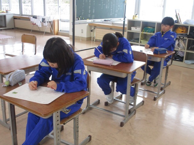 4~6年生は、算数の学習のたしかめテストに取り組みました。