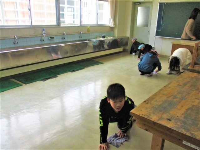 今日は、音楽室や理科室等の特別教室を掃除しました。ぞうきんを使って、教室の隅々までピカピカにしました。