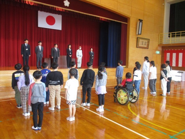 また、始業式では、校長先生より今年度の福沢小学校は「笑顔 輝く 福沢っ子~わくわく学び とことんやりぬく子~」を学校目標とし、何事にも最後まで諦めずにとことんやりぬくことを大切にしましょうというお話がありました。
