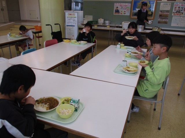 給食が始まりました。今年度最初の給食は、子供たちが大好きなカレーライスでした。