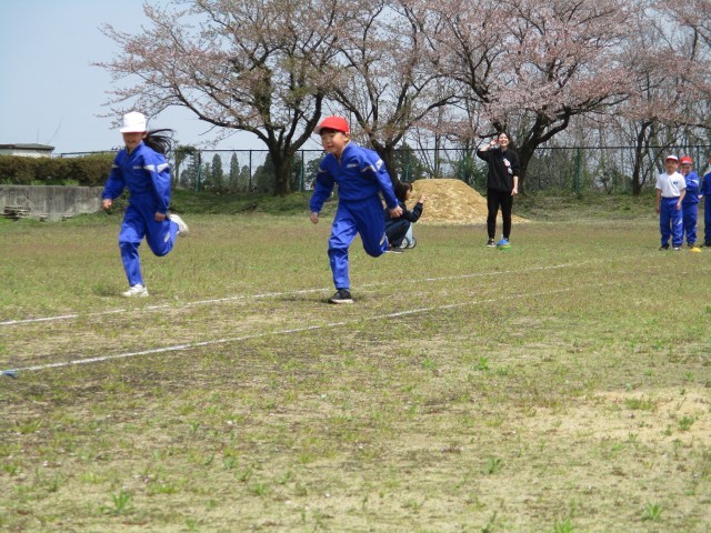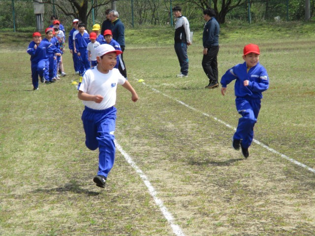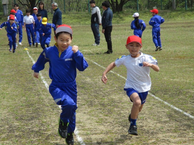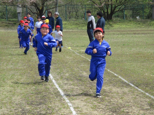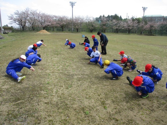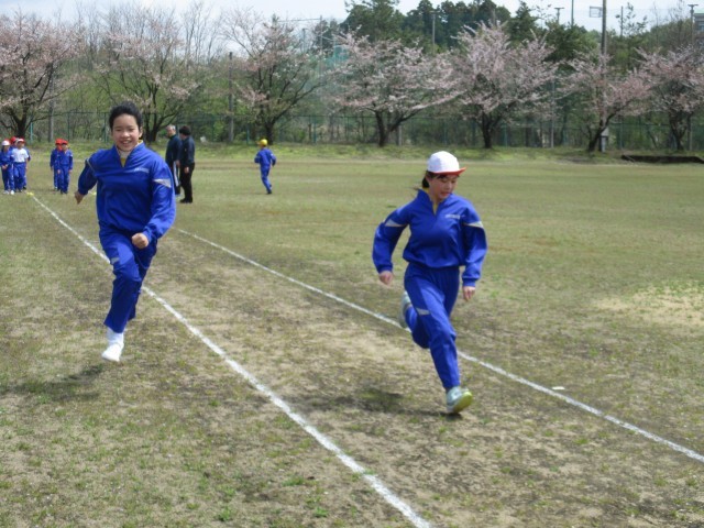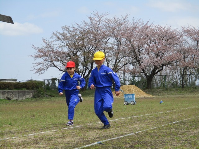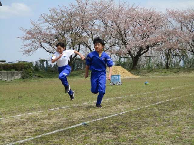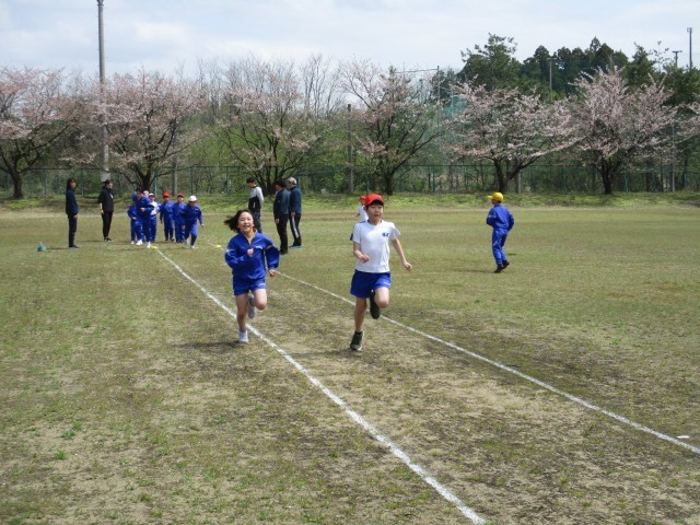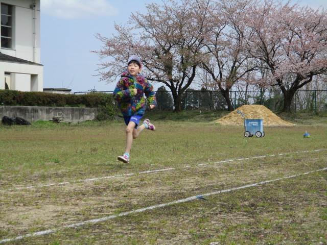 今日は、とてもいい天気だったので、グラウンドで50メートル走を行いました。