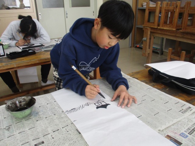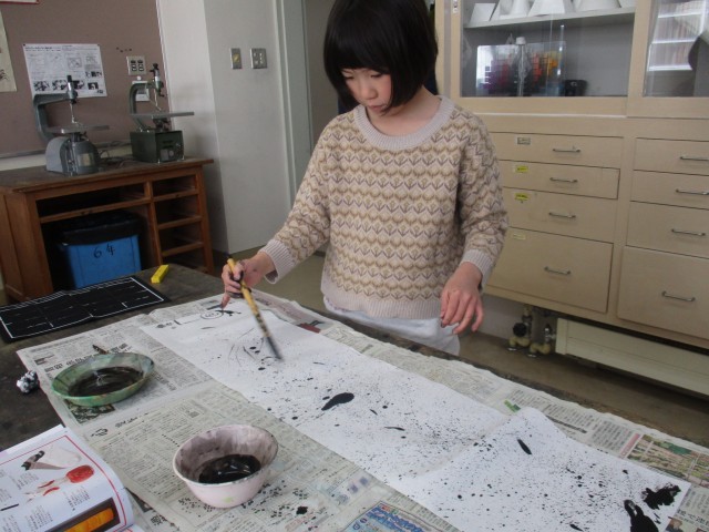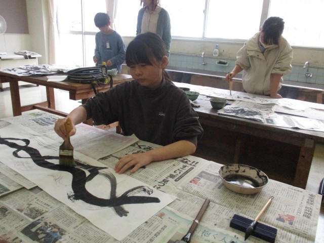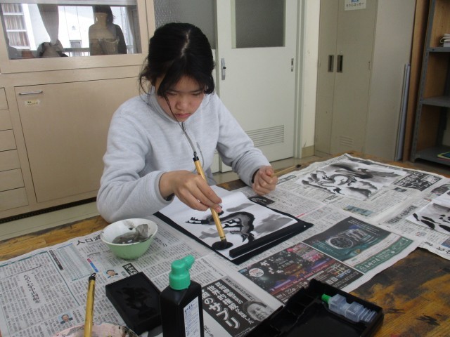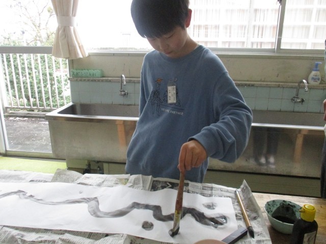 「墨と水から広がる世界」をテーマに、それぞれが思い描く世界を墨で表現しました。