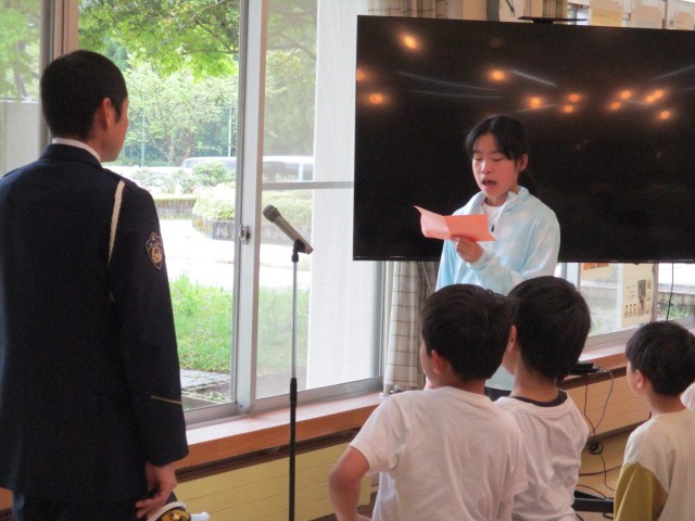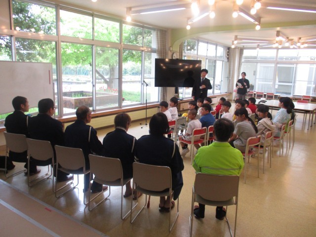 富山南警察署、富山南交通安全協会、大山地区の交通指導員の方をお招きして交通安全教室を行いました。