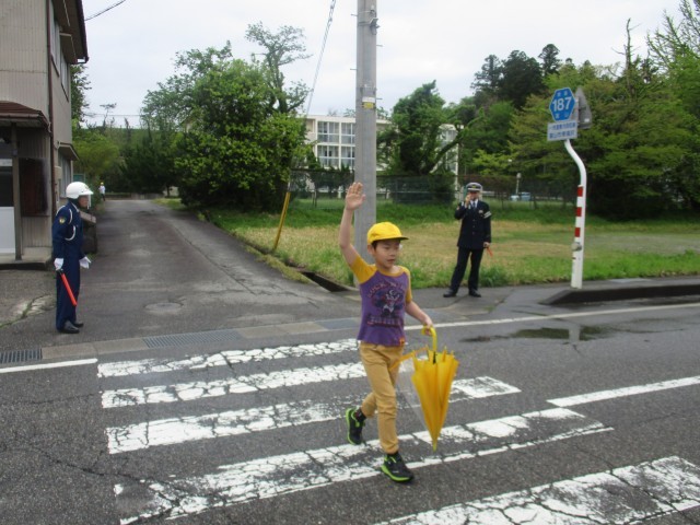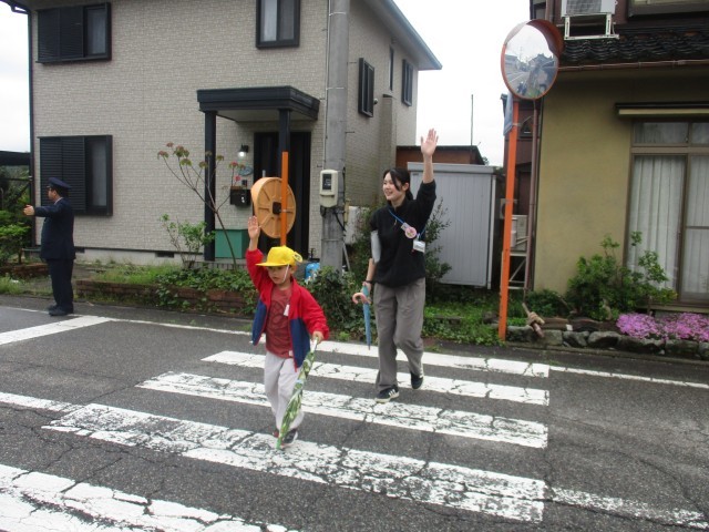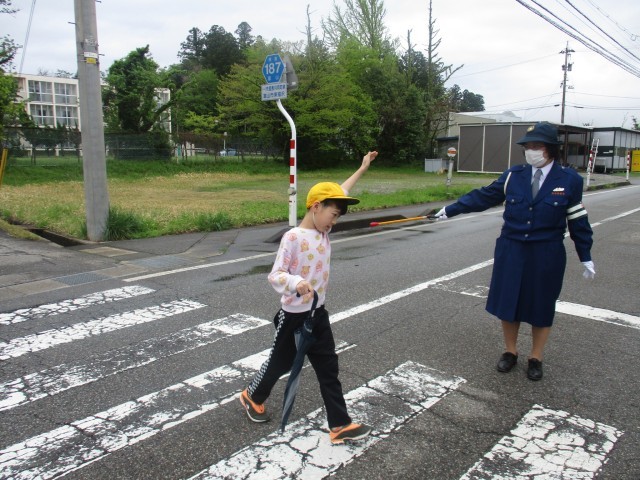 警察署の方から交通安全で気を付けるポイントとして①赤信号では渡らない。②横断歩道は手をあげて渡る。③横断歩道を渡る前に右左右を確認する。3つを教えていただきました。