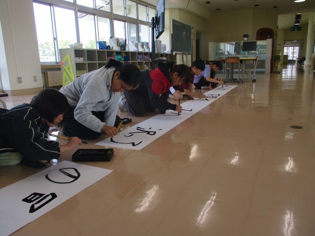 上学年は運動会に向けて、スローガンを書いたり、アピールタイムの構成を考えたりしています。
