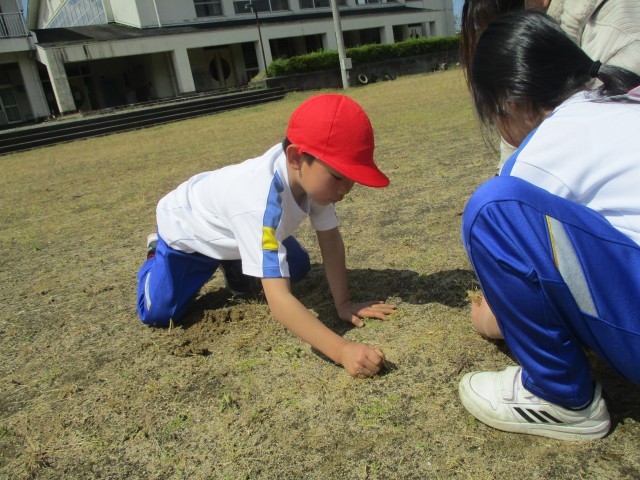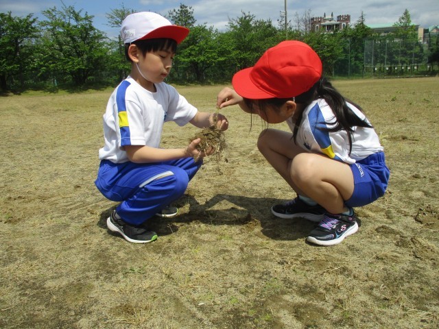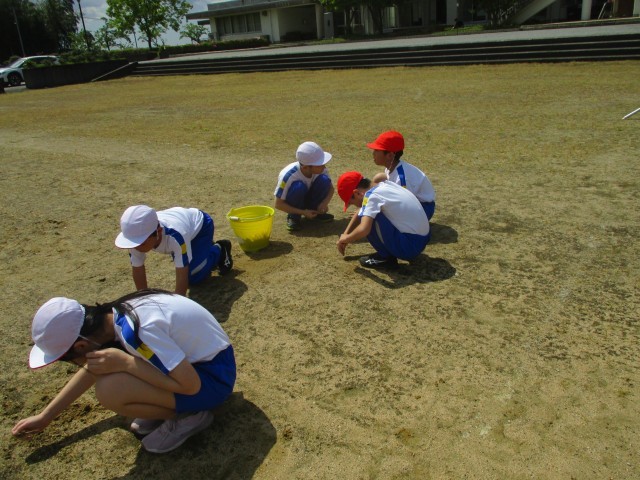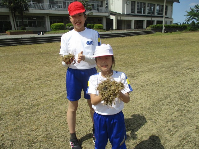 運動会練習の後、みんなで協力してグラウンドの草むしりをしました。