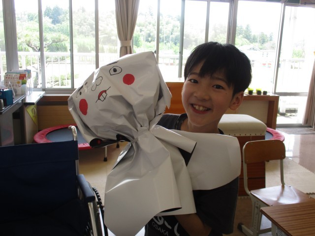 「運動会の日、晴れますように」と願って、大きなてるてる坊主をつくりました。