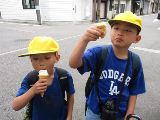 平野屋では、ソフトクリームや最中アイスを買って食べました。外は少し寒かったですが、子供たちは「美味しい!」と言いながら食べていました。