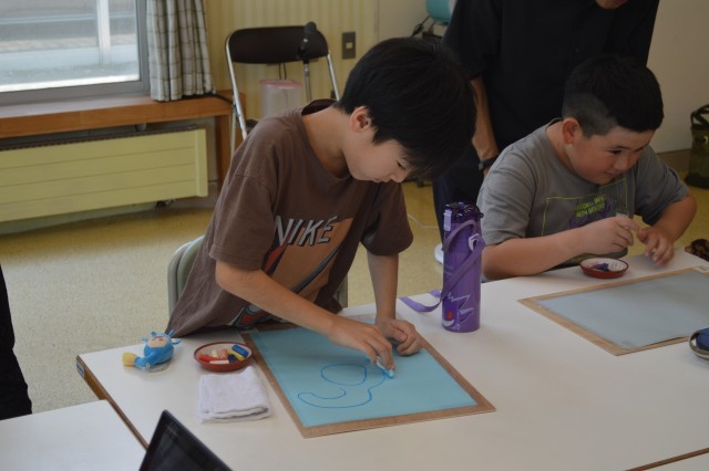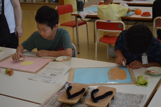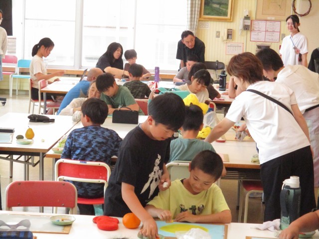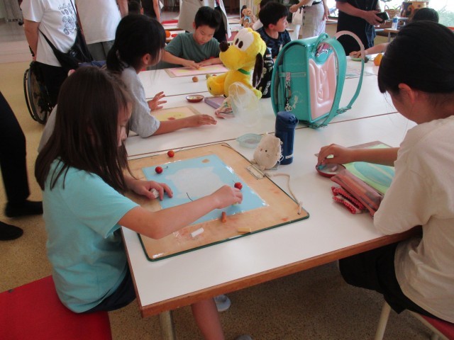 子供たちは描きたいものを決めて、色や形を意識して描くことができました。