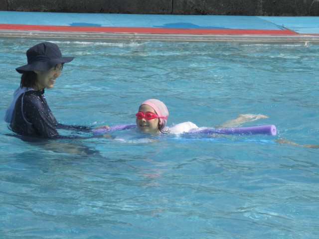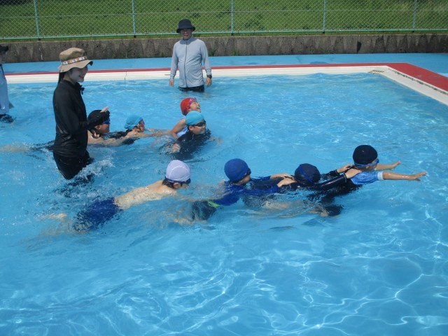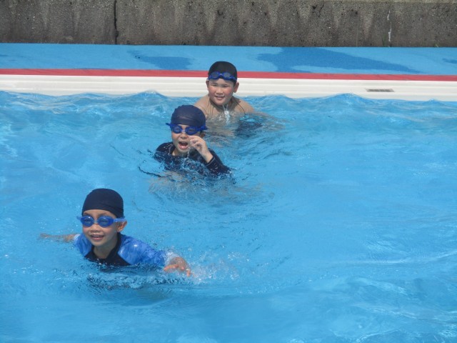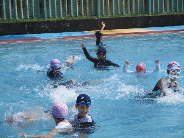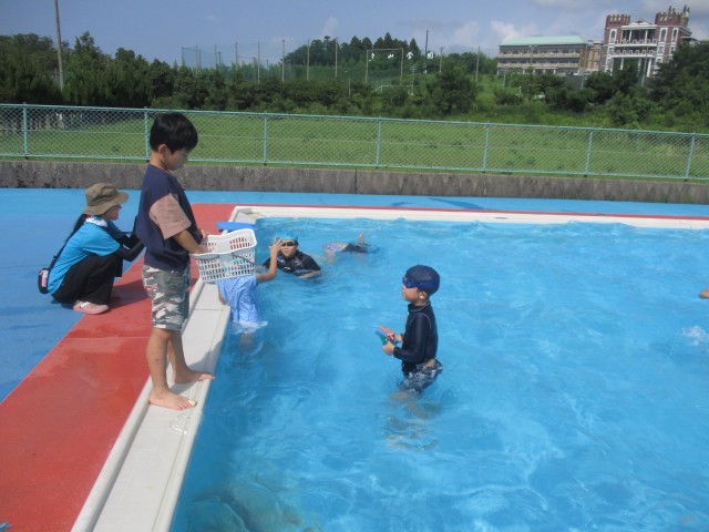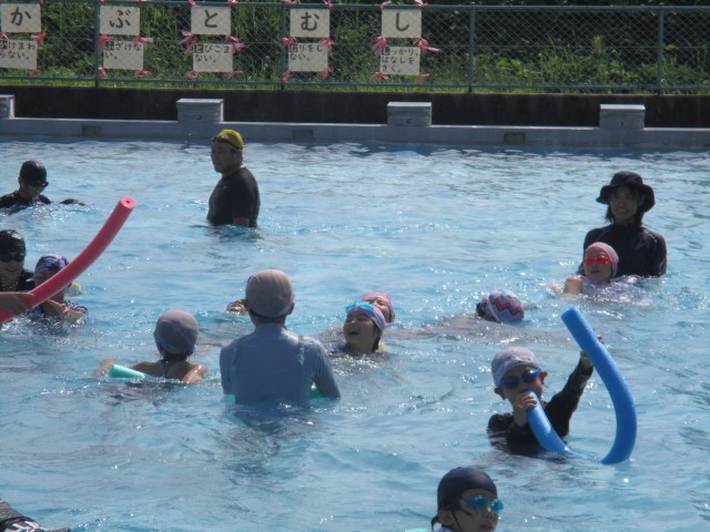 後半は、大プールと小プールに分かれて、泳いだり、遊んだりして小見小学校の友達と交流を深めました。