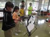 上学年は、4つのグループに分かれて、いろいろな楽器を使って「トルコ行進曲」に合...
