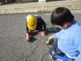 虫眼鏡を使って黒い紙に、日光を集めるとどうなるかの実験を行いました。