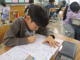 漢字ドリルに取り組みました。書き順や、画数等も一緒に覚えながら書いています。