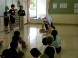 ハッピースマイル委員会の子供たちが、劇やクイズを通して、ほうきの正しい使い方や...