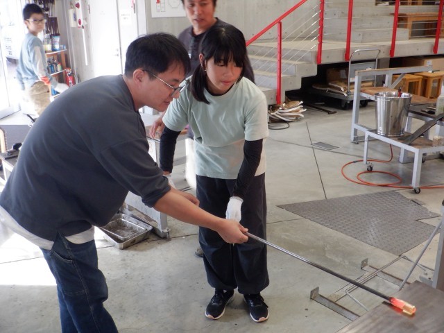 昼食はファミリーパークでとり、他校の児童とも楽しく会話をしながら交流を深めました。午後からは、ガラス工房に移動し、卒業制作となるペーパーウェイトづくりに挑戦しました。それぞれが思い思いの形や色を選び、世界に一つだけの作品を完成させました。