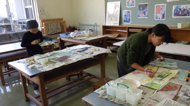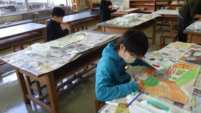 5・6年 図画工作科 公開日 2025/11/07 更新日 2025/11/06 5・6年生 5・6年生が描いてきた「わたしの大切な風景」の絵も、いよいよ最終段階に入りました。立体的に見えるように影をつけたり、壁や床が木目に見えるようにする色の濃さをを工夫して塗ったりしました、出来上がったら地区の文化祭で展示する予定です。
