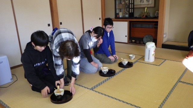 今日の茶道クラブでは6年生がお点前、5年生はお茶のお運び、4年生はお菓子のお運びを中心に練習しました。指導していただいている先生から、6年生がお茶を上手に点てられるようになってきているとお褒めの言葉をいただきました。3学期もがんばって練習していきたいと思います。