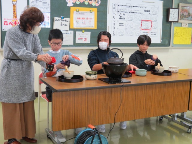 ができました。6年生は「お茶を上手に点てることができているね。」と先生に褒めていただきました。