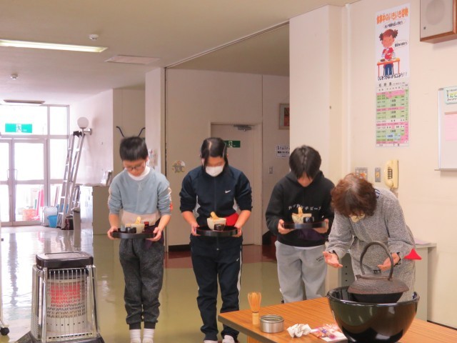 今日の茶道クラブでは、来月の小見っ子ふれあい茶会に向けて6年生はお点前、3~5年生はお運びの練習を