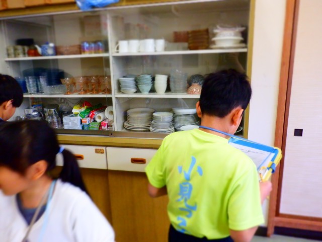 初めて家庭科を学ぶ5年生に対して、6年生がこれまでの学習を生かし、使う物の場所などを教える姿が見られました。5年生も、一つ一つよく確認しながら探検していました。