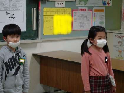 1年生は、「きんぎょの あぶく」というかわいい詩を大きな声で暗唱しました。