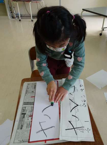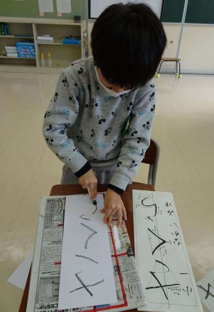 小学校で初めての書初大会に向けて、練習に取り組む1年生。