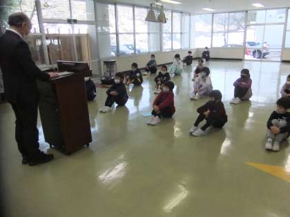 8月から続いた長い2学期が終了します。終業式では、校長先生から冬休みに守ってほしい3つの約束について話を聞きました。話す人の目を見て、真剣に話を聞く小見っ子のよい姿が見られました。