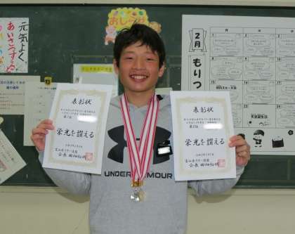 富山県学童スキー大会で入賞した6年生の表彰を行いました。