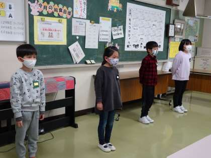 1年生は、「しんぴんのあさ」を暗唱しました。
