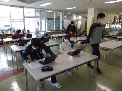 早速、自分のクラスに入り、先生からのアンケートに答えていました。