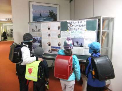 来年度に延期になった白馬北小とのスキー交歓会。今シーズンのスキー活動の写真や、来年の再会を願うメッセージが届きました。