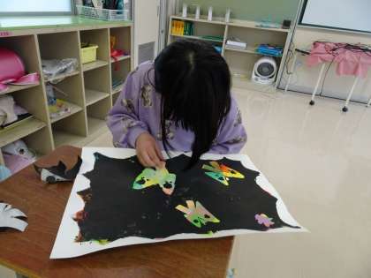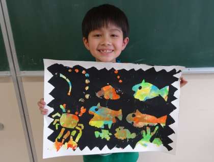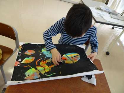 インクが乾いたら、お楽しみ。シールをはがします。どんな色が出てくるのか、わくわくしながらシールをはがしました。