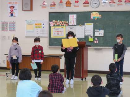 続いて、1・2年生が今年度がんばったことについて発表しました。
