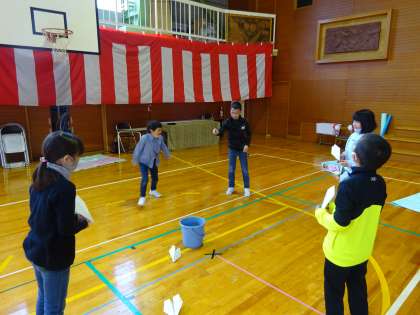 3・4年生の最後のお楽しみ会では、紙飛行機でいろいろな挑戦をしました。