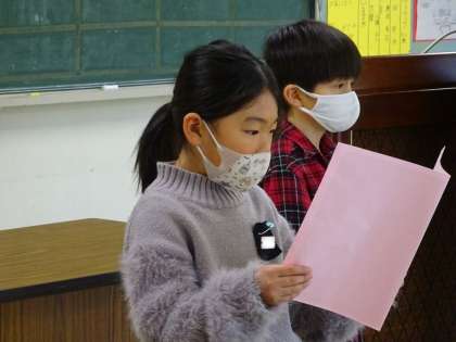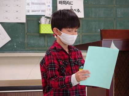 小学生になって学習した漢字やスキー等、一人一人がしっかり発表することができました。