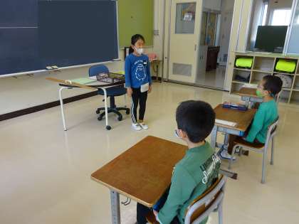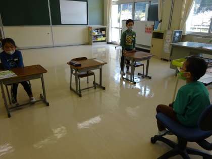 1時間目は、1年生に先生や2年生のことを知ってもらうために、自己紹介をしました。