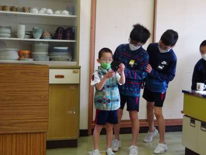 視力検査では、検査方法をお兄さんに教えてもらいながら検査をしました。