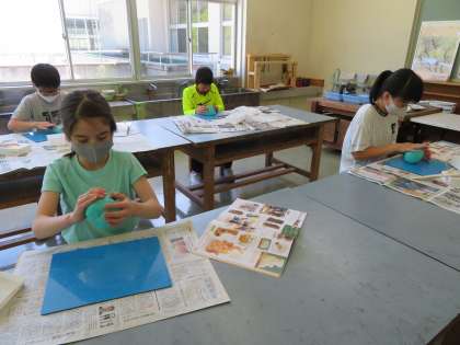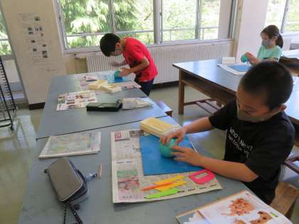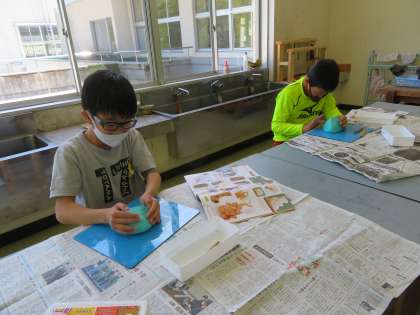 ひとかたまりの粘土から思い浮かんだものを形にします。
