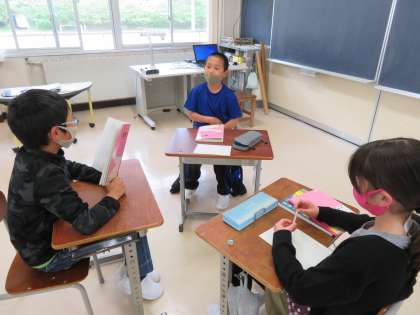 きき手、話し手、記録者に分かれて、インタビューをし合いました。