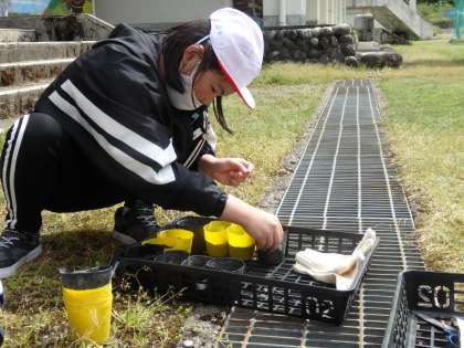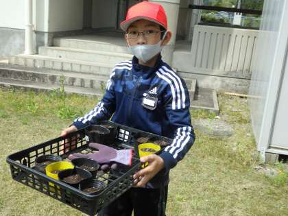 理科の学習で、ひまわりやパプリカ等、いろいろな植物の種を植えました。
