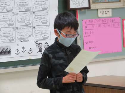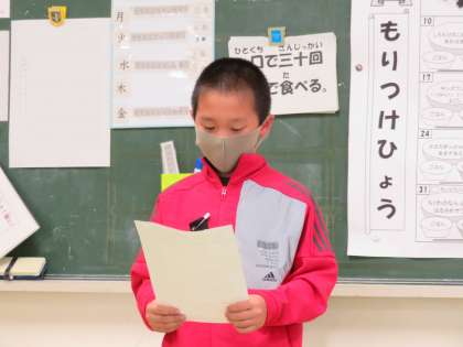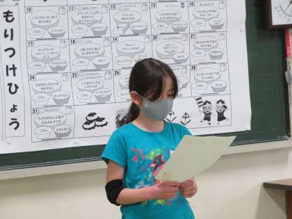学習や片付け、運動に関することなどそれぞれの目当てを発表しました。